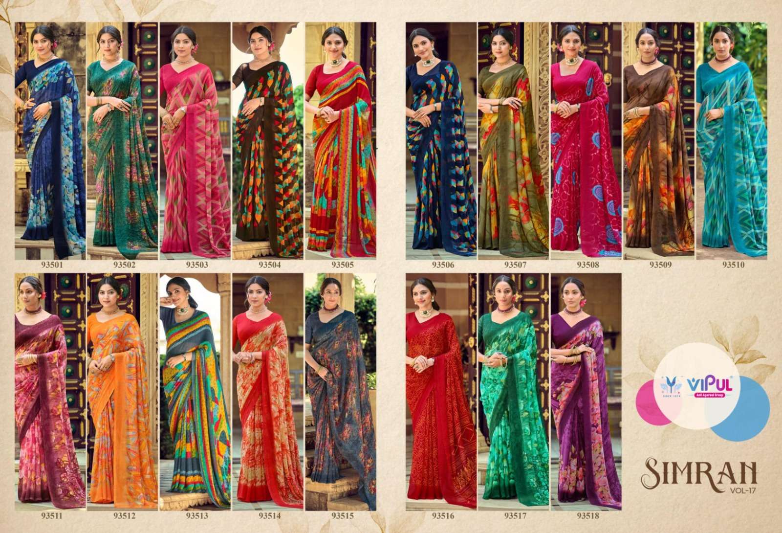 | Catalogue: | Vipul SIMRAN VOL 17 Stunning Festive Wear GEORGETTE Saree Collection |