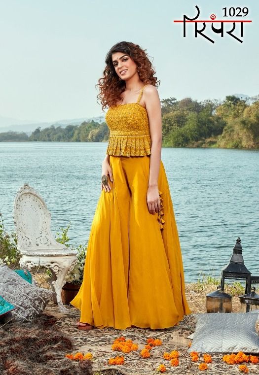 Bottom Fabric:- Georgette Bottom Style:- Sharara Style-Palazzo