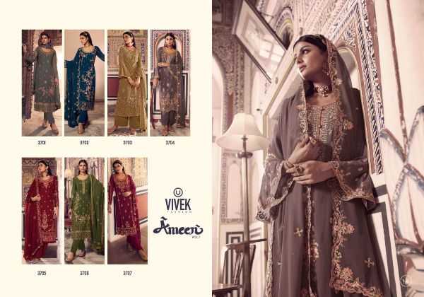 Vivek Presents Ameen Vol-7 3701 - 3707 Series Georgette With Embroidery Work Salwar Suit Collection