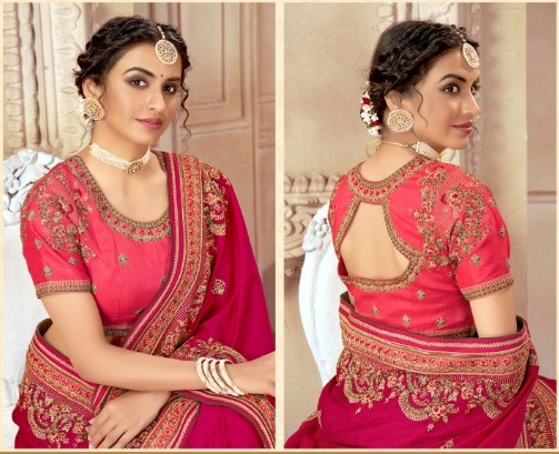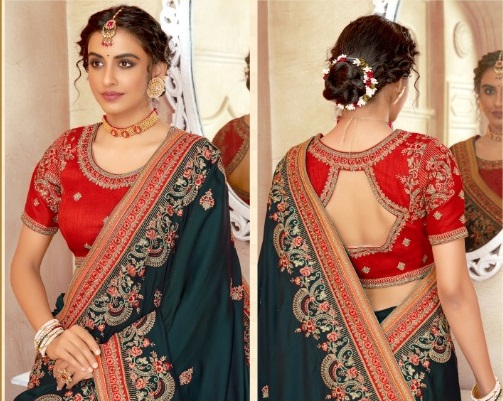 Latest Traditional Wear Saree Collection. Exclusive with Embroidery Work gives a Fashionable Look, High sensed style and luxury makes you ready for envious glazes and very rich & Royal in the Party, Function, Event etc.
