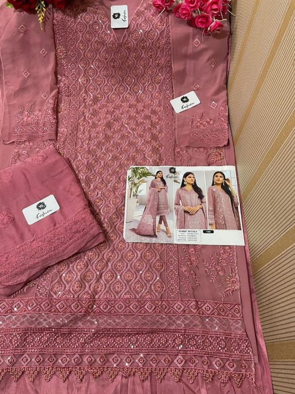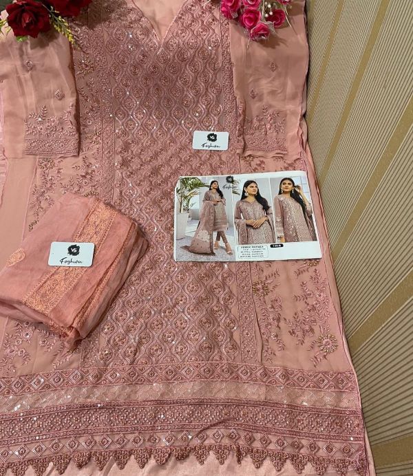 Latest Designer pakistani suit Collection. Exclusive with Foil & Thread Embroidery Work gives a Fashionable Look, High sensed style and luxury makes you ready for envious glazes and very rich & Royal in the Party, Function, Event etc.