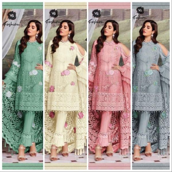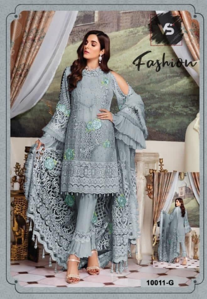 Vs Fashion Prersents Vs Colour Edition D.no 10011e-g Series Fox Georgette With Heavy Embroidery Pakistani Collection