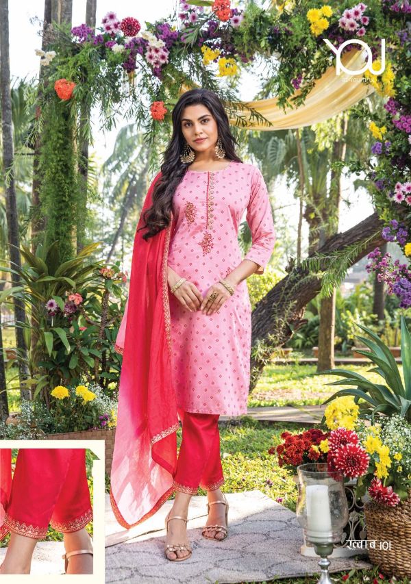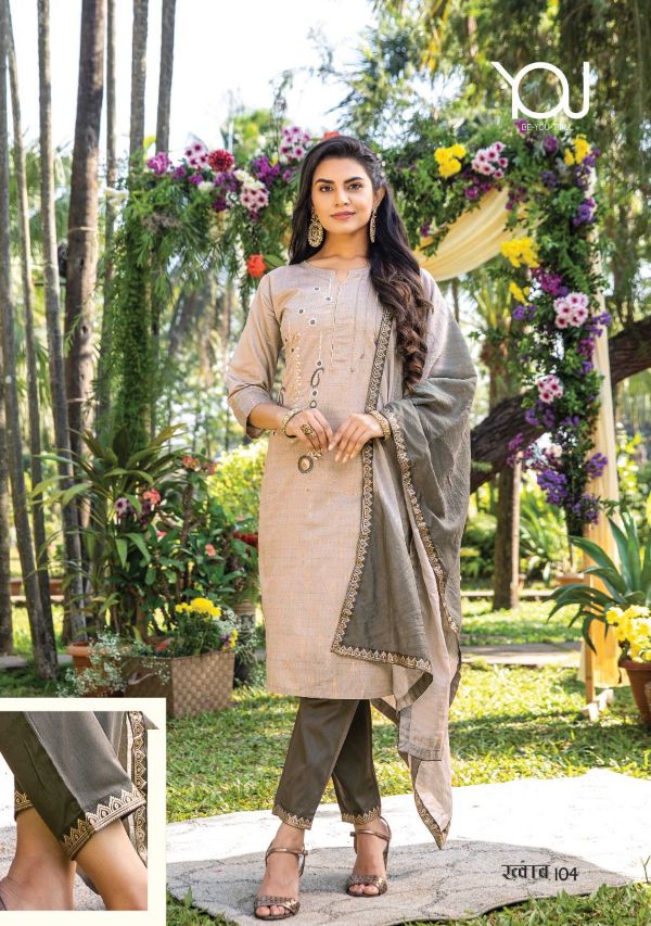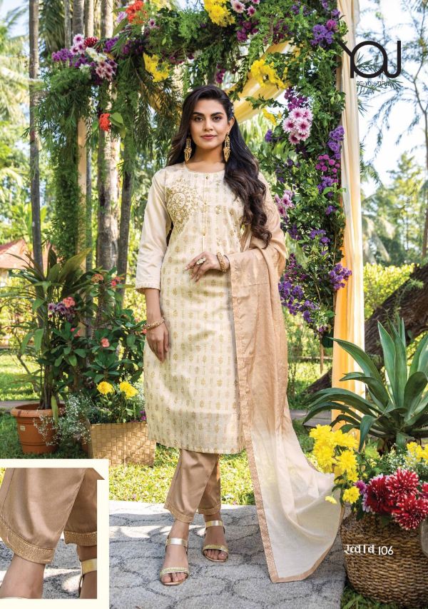 Wanna Presents Khwab 101-108 Series Finest Quality Of Heavy Chanderi Kurti Pent Dupatta