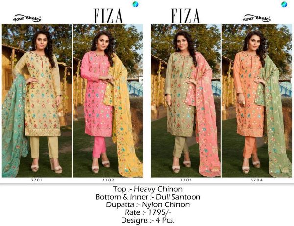 Your Choice Presents Fiza 3701-3704 Series Heavy Chinon Salwar Suit Collection