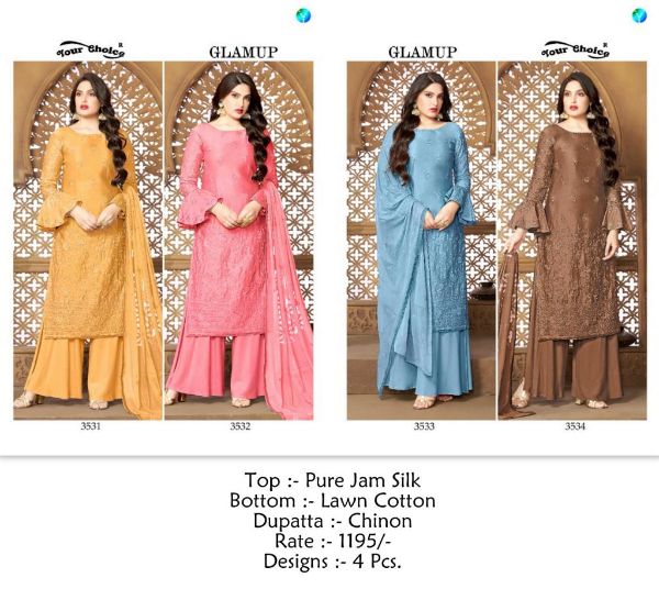 Your Choice Presents Glamup 3531-3534 Series Pure Jam Silk Salwar Suit Collection