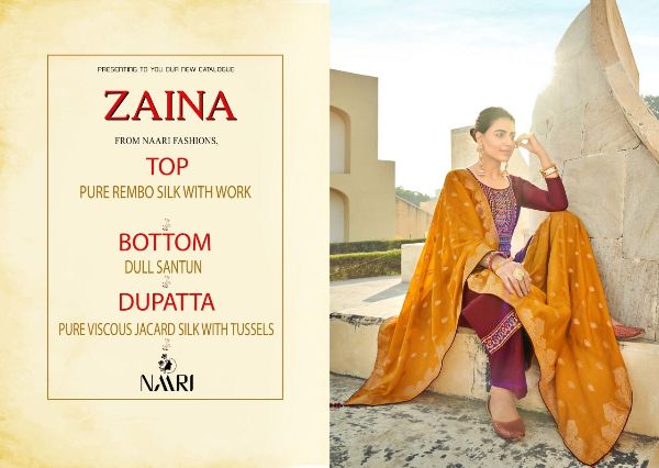 Zaina Presents Naari 3201-3206 Series Pure Rembo Silk With Work Salwar Kameez Collection