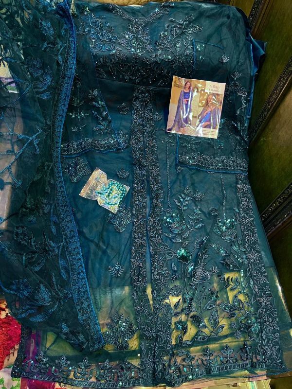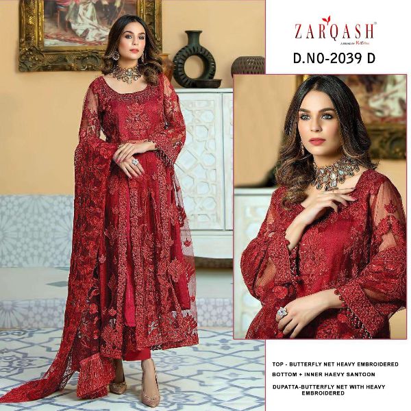 Zarqash Hit Designs Butterfly Net With Embroidery Work Pakistani Suits Collection