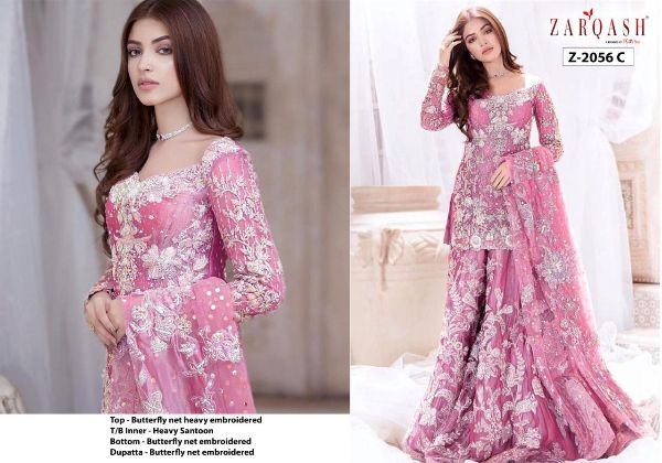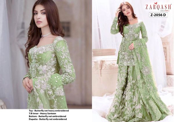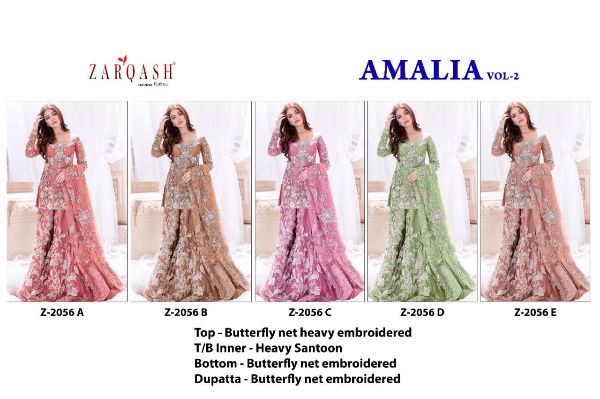 Zarqash Presents Amalia -2 D No Z-2056a --2056 Beautiful Butterfly Net With Attractive Designer Work Fancy Pakistani Suits Collection