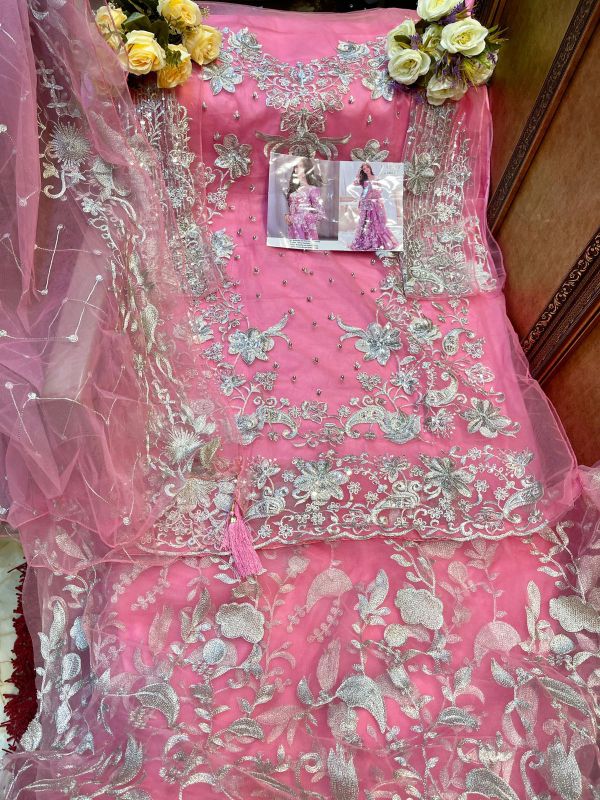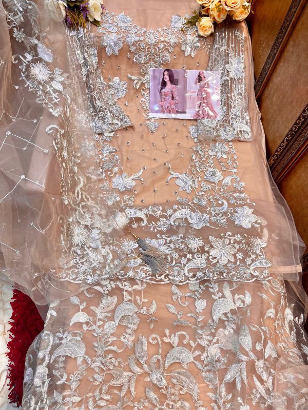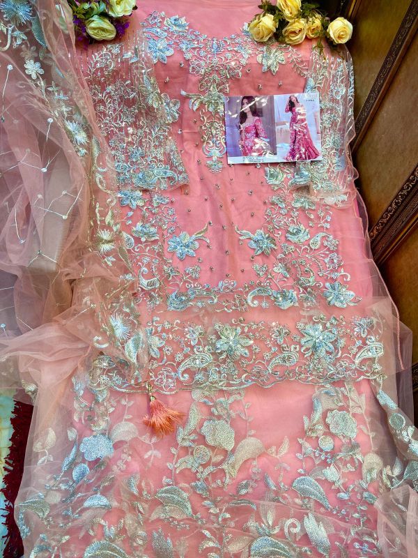 Latest Designer pakistani suits Collection. Exclusive with Foil & Thread Embroidery Work gives a Fashionable Look, High sensed style and luxury makes you ready for envious glazes and very rich & Royal in the Party, Function, Event etc.
