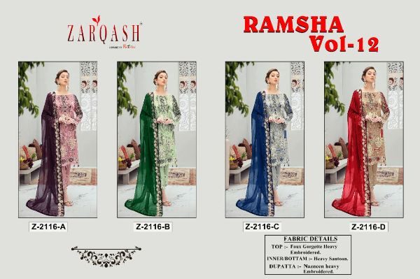 ZARQASH PRESENTS RAMSHA VOL-12 2116-A,2116-B,2116-D, 2116-D