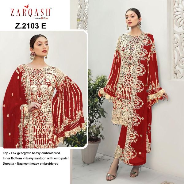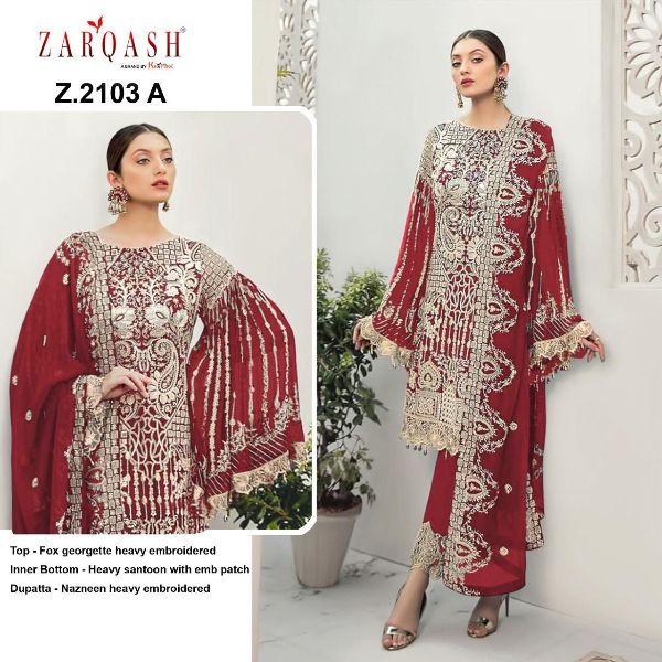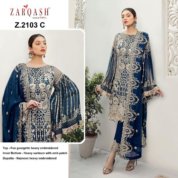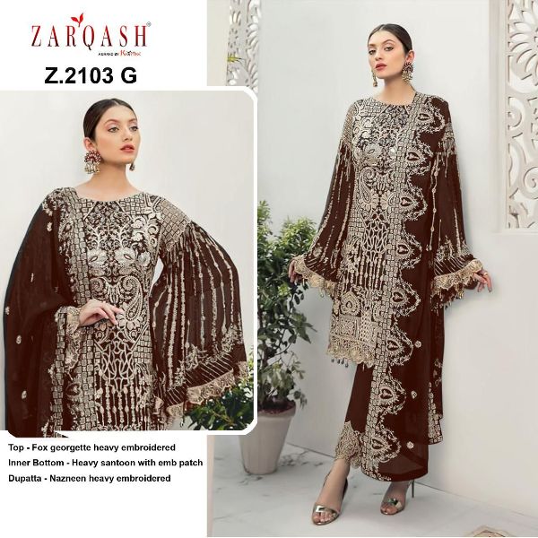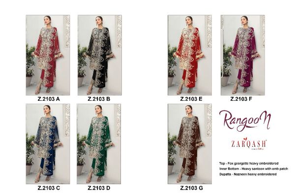 Zarqash Presents Rangoon Z-2103 Fox Georgette Heavy Embroiderery Pakistani Suit Collection