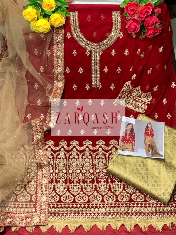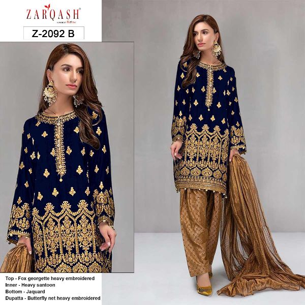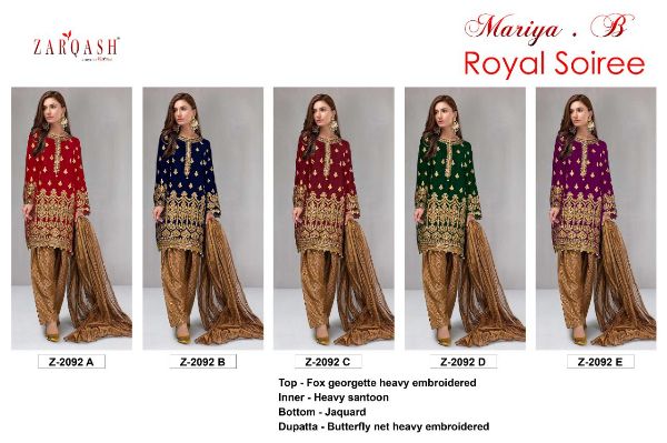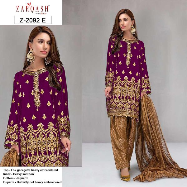 Zarqash Presents Royal Soiree Z-2092 A-e Series Fox Georgette Heavy Embroiderery Unstitch Pakistani Suit Collection