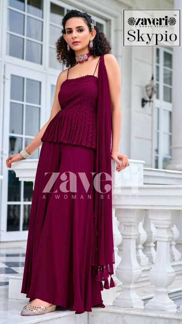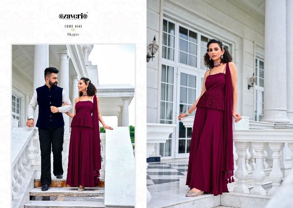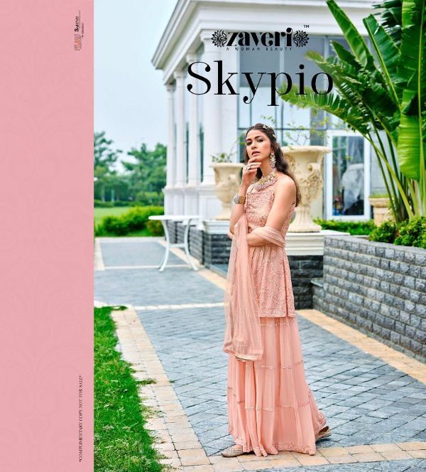 Zaveri Presents Skypio 1043-1046 Series Pure Viscose Georgette With Embroidery Work Front And Back Salwar Suit Collection#1586
