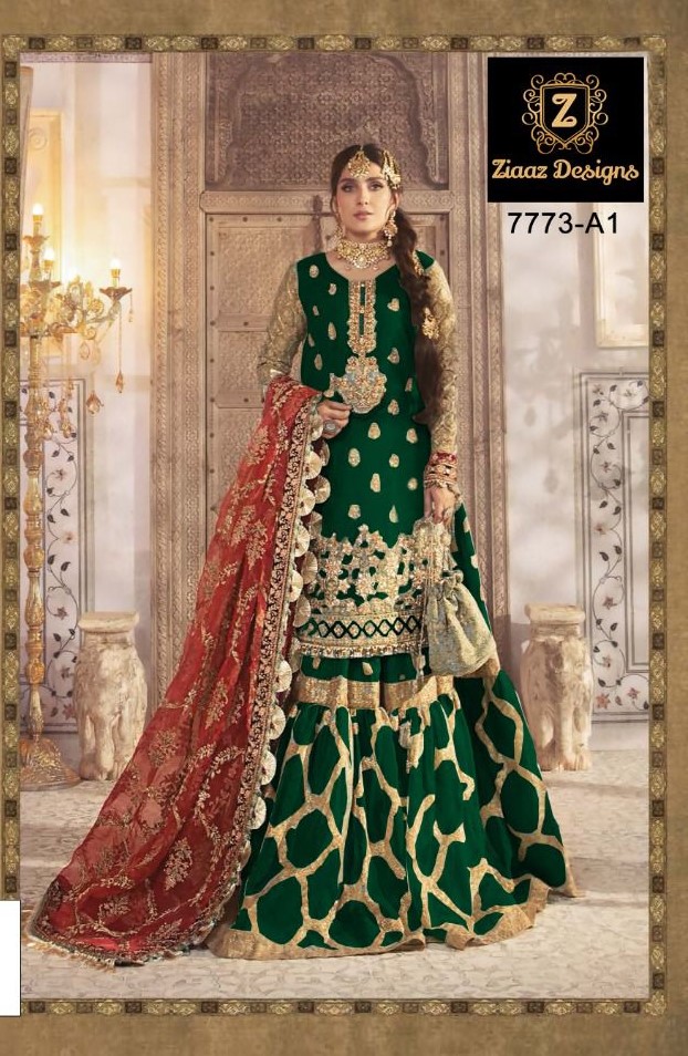 Ziaaz Designs Presents 77731-a1 Colours Organza With Embroidery And Handwork Pakistani Suits Collection