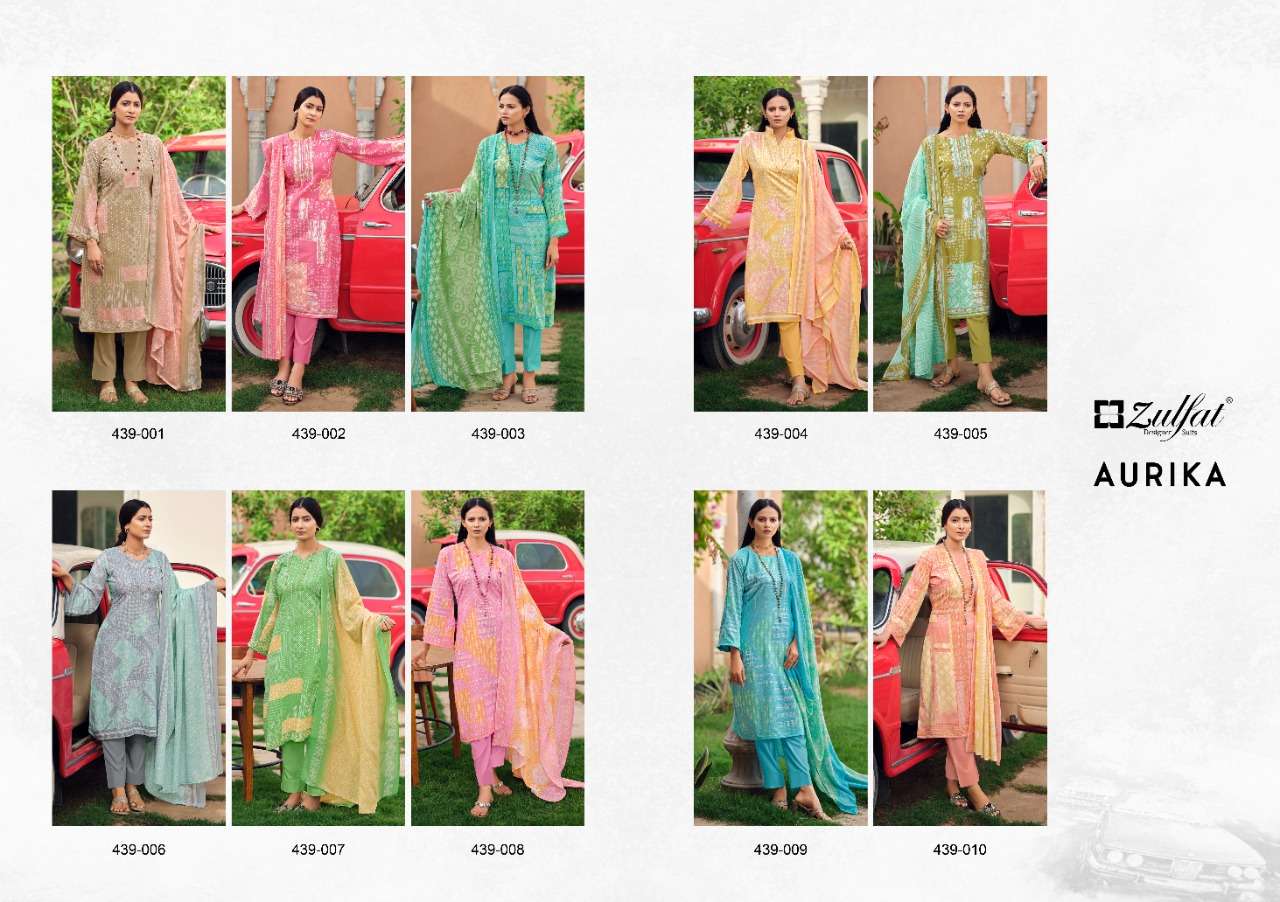 | Catalogue: | ZULFAT DESIGNER PRESENTS AURIKA 439-001 TO 439-010 SERIES PURE COTTON PRINTS COLLECTION AT WHOLESALE RATES SURAT N469 |