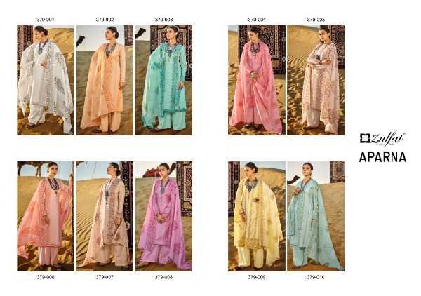 Zulfat Presents Aparna 379-001 To 379-010 Series Pure Cotton With Exclusive Prints Salwar Suit Collection