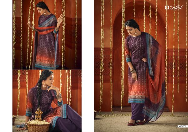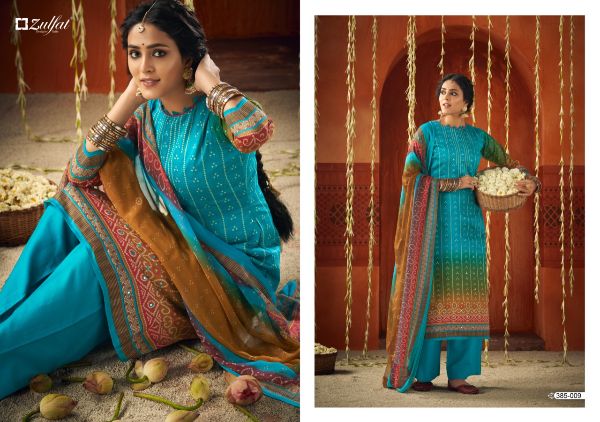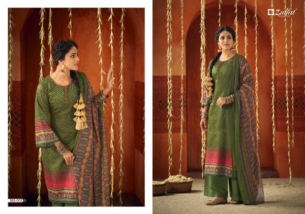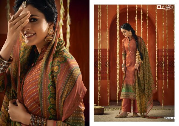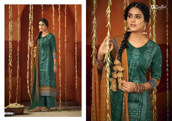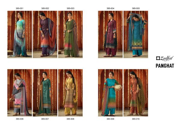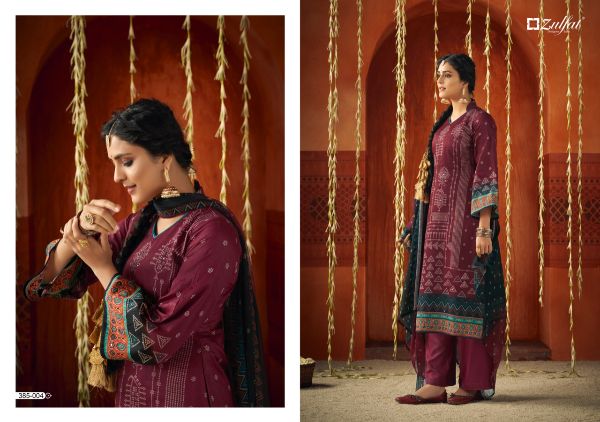Zulfat Presents Panghat 385 -001-385-1010 Series Pure Jam Cotton Print With Mirror Hand Work Salwar Kameez Collection