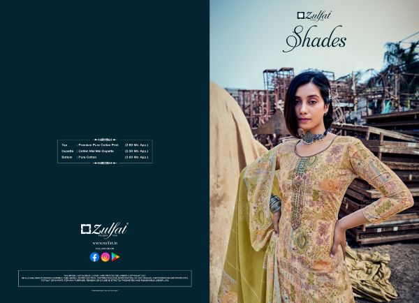 Zulfat Presents Shades 401-001-401-010 Series Pure Cotton With Elegant Embroidery Work Salwar Suit Collection